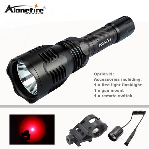 AloneFire HS-802 Hunting LED Flashlight Green Red Light Lighting Torch Dual mode Remote Pressure Switch+Gun mount