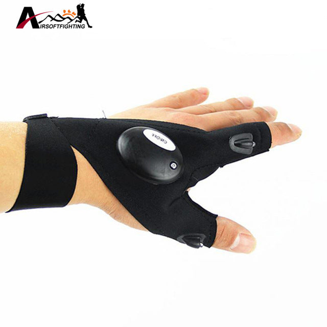 Fingerless Glove LED Flashlight Torch Outdoor Hunting Fishing Hiking Magic Strap Survival Rescue Light Glove Left /Right Hand#