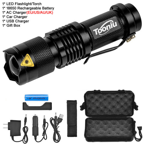Tooniu Mini Zoom cree XML L2 T6 Flashlight Led Torch 5 mode 3800 Lumens waterproof 18650 Rechargeable battery